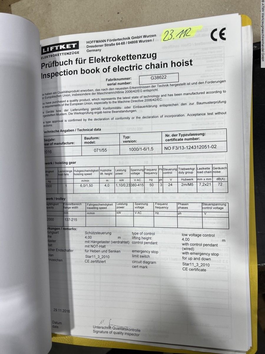 Usable hook path: 4000 mm
