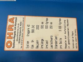 OHRA cantilever racking 5500x600mm 3000kg / per side