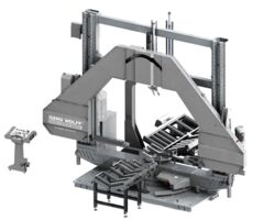 The KLY 1850 is a semi-automatic bandsaw that can perform mitre cuts up to 90°.